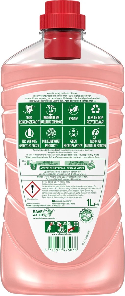 Ajax® Ajax Allesreiniger Fête Des Fleurs Hibiscus 6 X 1L – Voordeelverpakking