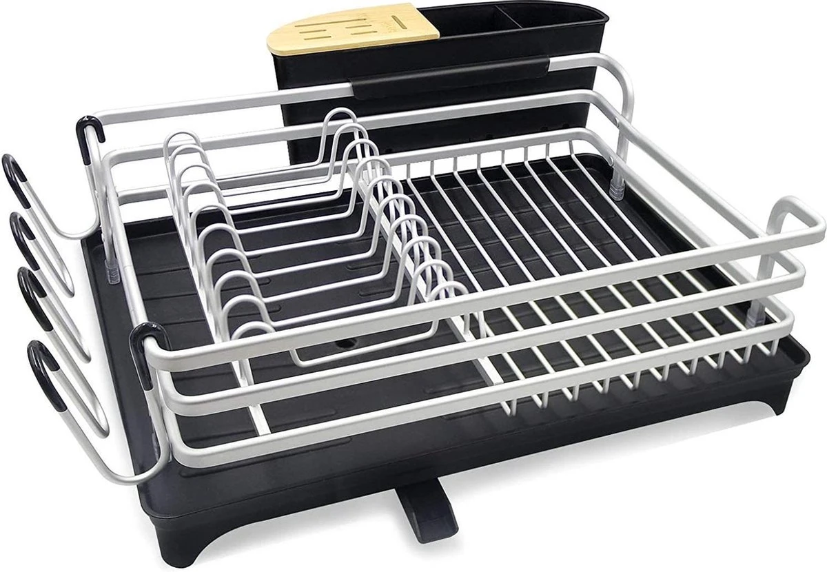 Doogo® Afdruiprek Met Bestekkorf En Lekbak Voor Keukenborden En Bestek Afdruiprek Met Draaibare Uitloop