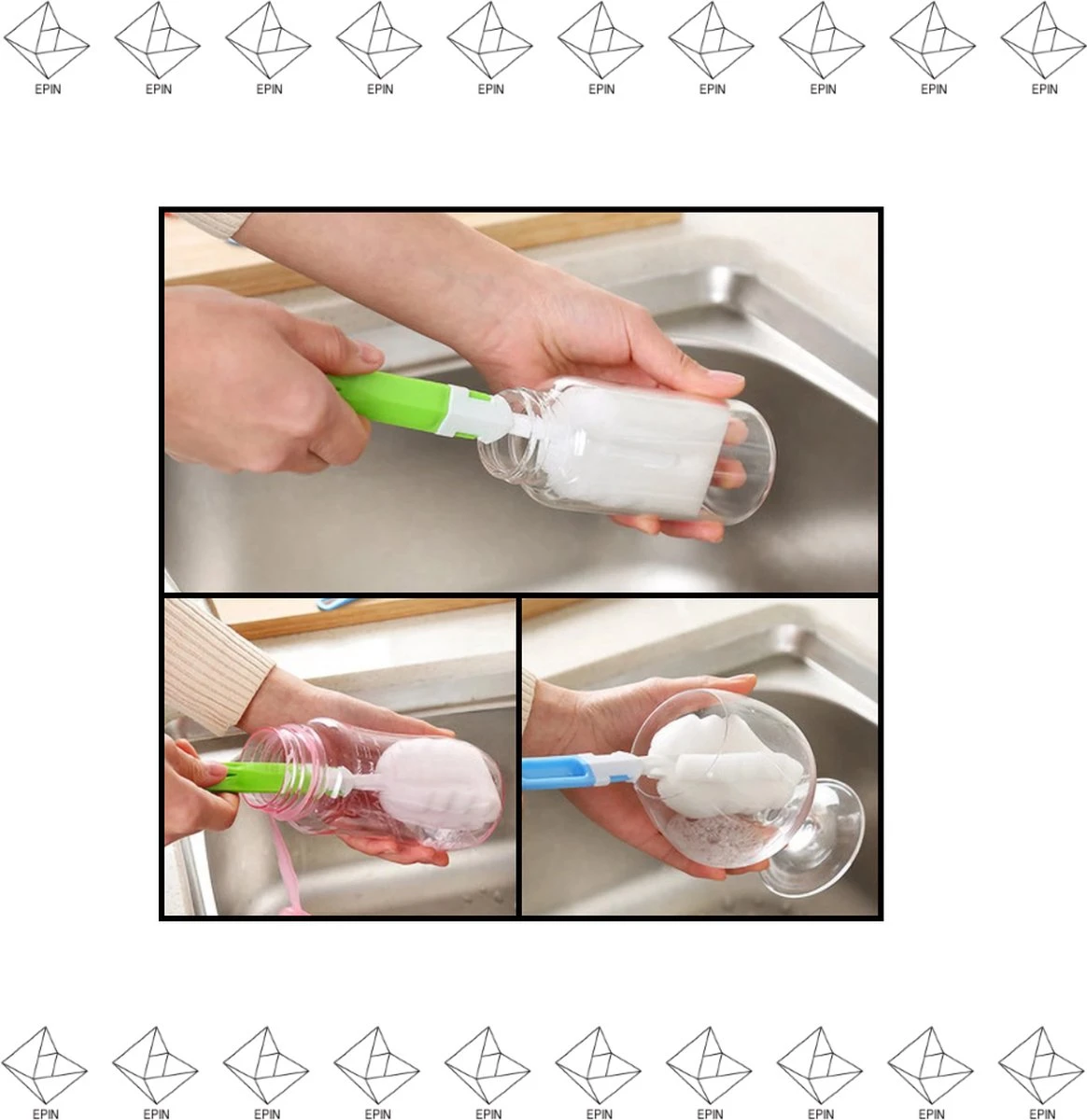 Deze flessenreiniger is zo ontworpen dat je hem snel en behendig kan gebruiken.