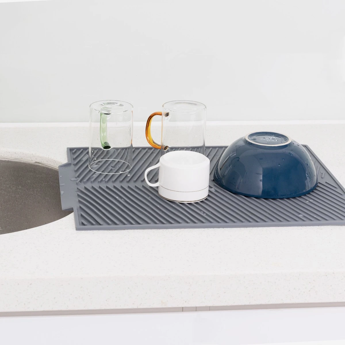 - INCLUSIEF: Je krijgt siliconenmat voor het drogen van borden en bestek, met een afvoer voor gootstenen. Afmeting 43 x 33,5 x 0,5 cm.