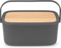 Gadgy Broodtrommel Met Bamboe Deksel – Brooddoos Met Snijplank – 36×19.5×11.5 Cm- Zwart